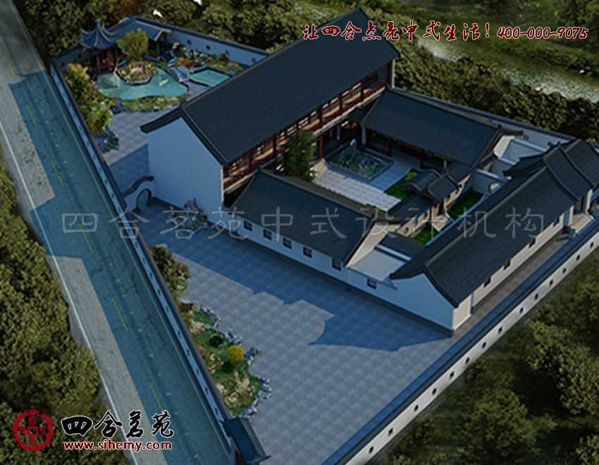 粉墻黛瓦、屋舍錯(cuò)落,漏窗、月洞門(mén),尺樹(shù)寸泓。掇山理水,色彩與園林景觀上給人江南園色的印象,而房屋對(duì)稱圍合,比例、尺寸也顯著四合院的布局。